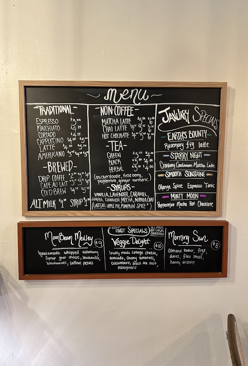 The menu at Moonbeam Café offers a thoughtfully curated selection of comforting drinks and simple café fare, designed to complement its warm, inviting atmosphere. Whether you’re settling in for a morning boost or looking for a quiet afternoon retreat, you’ll find options that suit these slower, reflective moments.